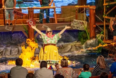 If you’re interested in non-stop thrills and action, there’s no better show than Pirates Voyage Dinner & Show. This attraction wins the title of Most Action-Packed Pigeon Forge show. Pirates Voyage is home to an epic battle between the Crimson and Sapphire crews as they fight for the coveted treasure. The battle takes place on land, on deck, in the air, and in water! Throughout the evening, you’ll witness sword fighting, acrobatics, high-diving, cannons blazing, and even some live animal tricks. Whether you’re mesmerized by the astonishing fire act or enjoying the mouth-watering four-course feast, you’re in for an action-packed adventure.